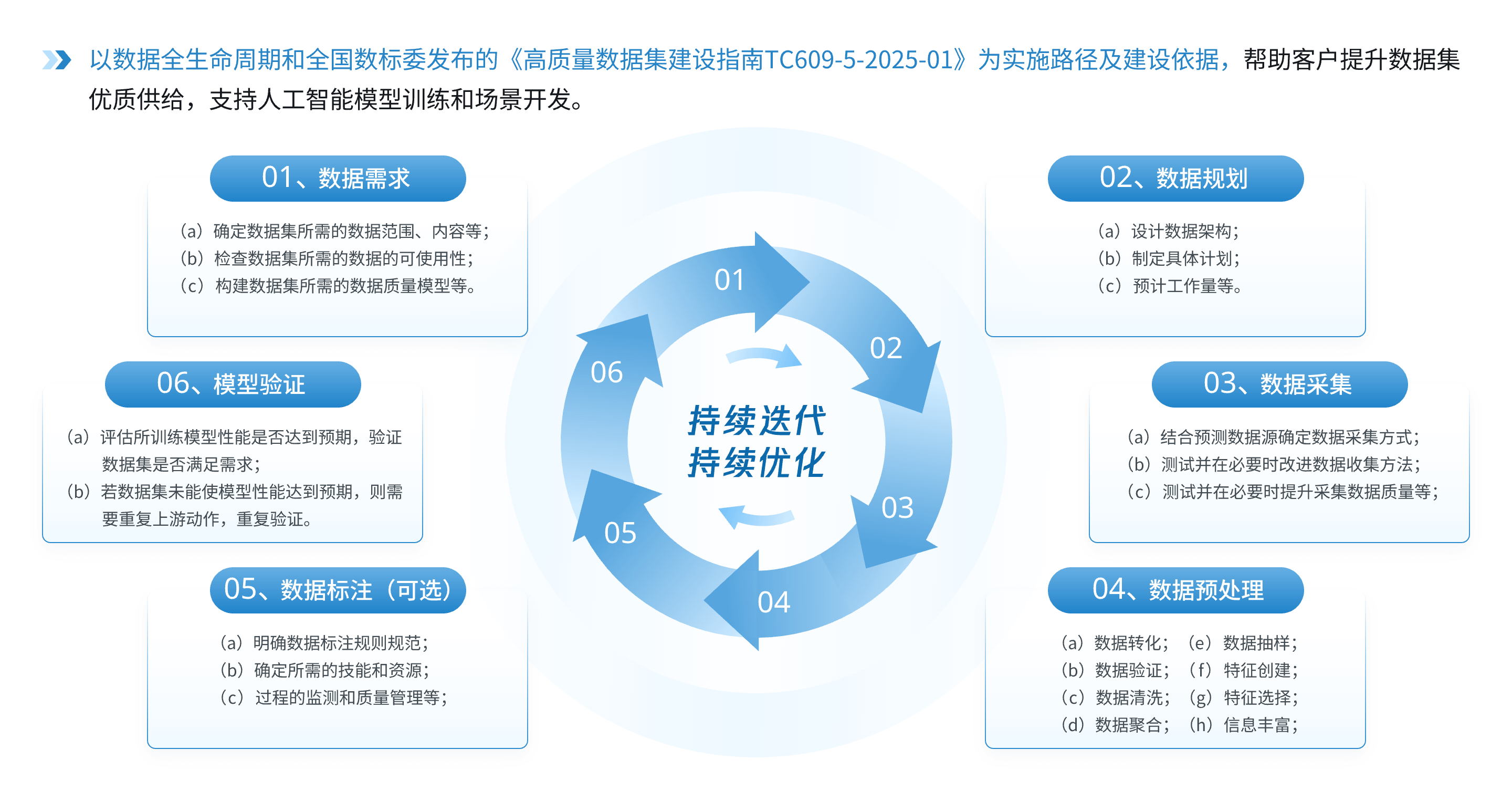 高质量数据集生产平台是包含行业/领域元模型构建子平台、多模态数据采集-存储-预处理-数据标注-数据集管理-数据集封装-数据集开放-模型管理-运维管理等子平台等若干子系统的数据集管理平台。平台以《关于促进数据产业高质量发展的指导意见》等文件为政策依据,以解决AI大模型发展中的数据瓶颈问题和响应国家数据要素市场化战略,推动跨行业数据共享与流通等目标而建立。
