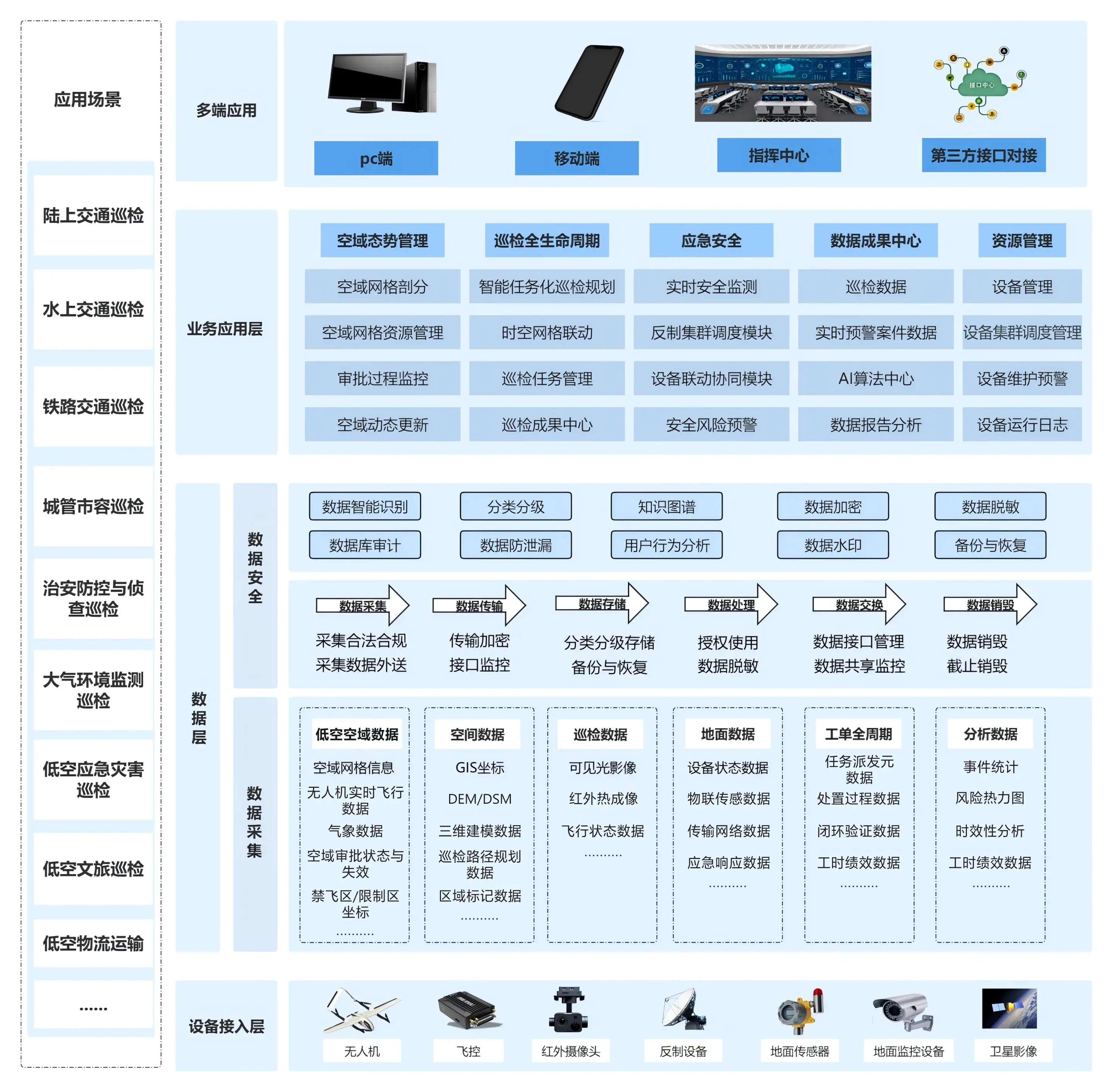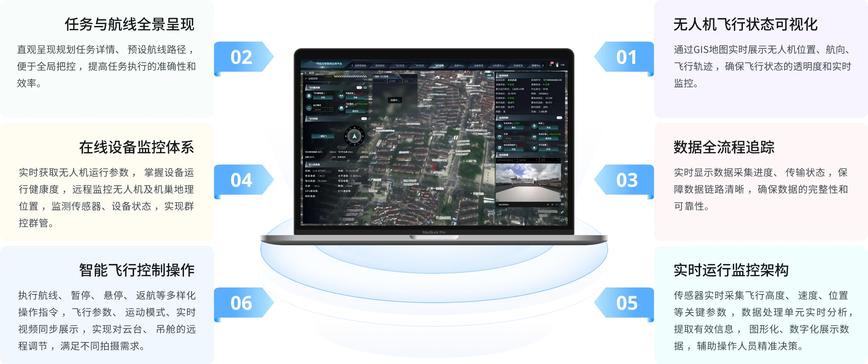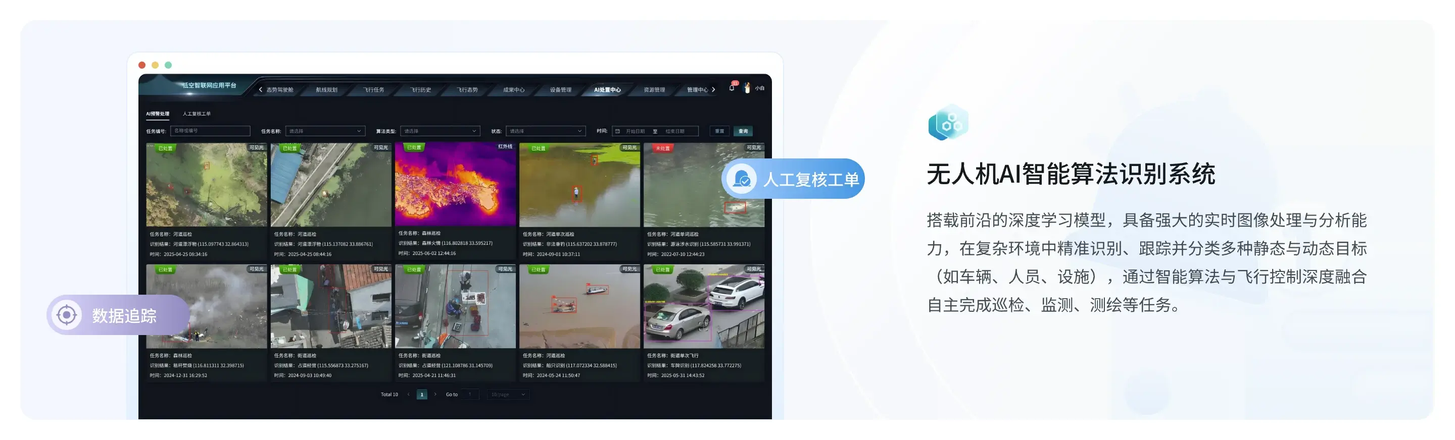 基于无人机开展自然资源巡检、生态环境巡检、电力线巡检、城市交通巡检、市政设施巡检、城市固废巡检、智慧园区巡检等场景应用,为政府精细化监管、企业精准决策提供详实的数据支持。